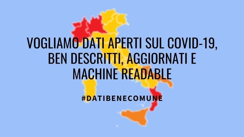 Per questo motivo ho firmato la petizione e voglio rilanciare l’appello di organizzazioni, giornaliste e giornalisti e di cittadini per #datiBeneComune. Con una lettera aperta chiedono al Governo e alla Regioni di rendere disponibili, aperti, interoperabili (machine readable), aggiornati e disaggregati i dati relativi all’emergenza Covid-19. La trasparenza è alla base di ogni democrazia, per questo motivo i dati devono essere pubblici e fare in modo che scienziati e giornalisti possano elaborarli, contribuire a monitorare il rischio epidemico, comprendere le scelte istituzionali fatte ed essere così parte di un processo di confronto e controllo democratico.