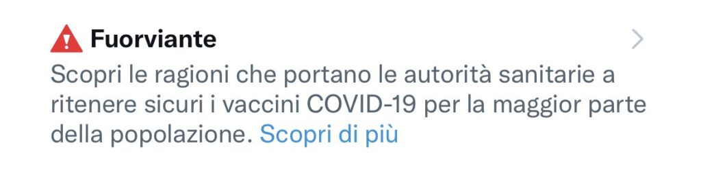 L’impegno dei social network contro la disinformazione, soprattutto legata al Covid-19 o ai vaccini, va avanti. L’ultima azione in questa direzione viene da Twitter che ha perfezionato il banner che compare sotto i tweet legati al Covid-19 o ai vaccini con la dicitura “fuorviante” per segnalare tutti quei messaggi che contengono informazioni false o ingannevoli sul Covid-19 e che potrebbero causare danni.